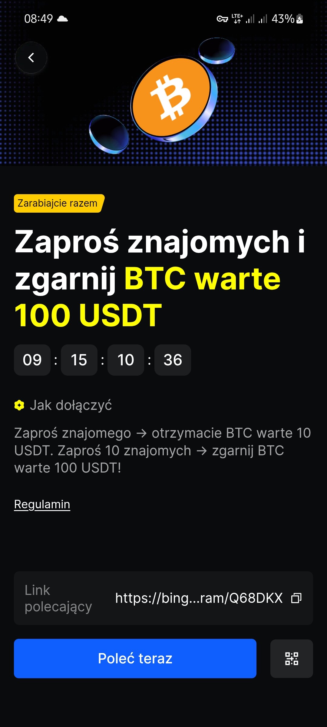 michalpolbo Napisano Niedziela o 08:10 Zgłoszenie Podziel się Napisano Niedziela o 08:10 Jak w tytule BingX wróciło z promocją za kyc beż depo. 10$ do wypłaty plus kupony co na + też do wypłaty Polecam. Zgarnąłem airdrop BTC na BingX. Mam dla Ciebie BTC warte 10 USDT. Liczba miejsc ograniczona - nie czekaj! >> Ref code:Q68DKX Odnośnik do komentarza Udostępnij na innych stronach More sharing options...
