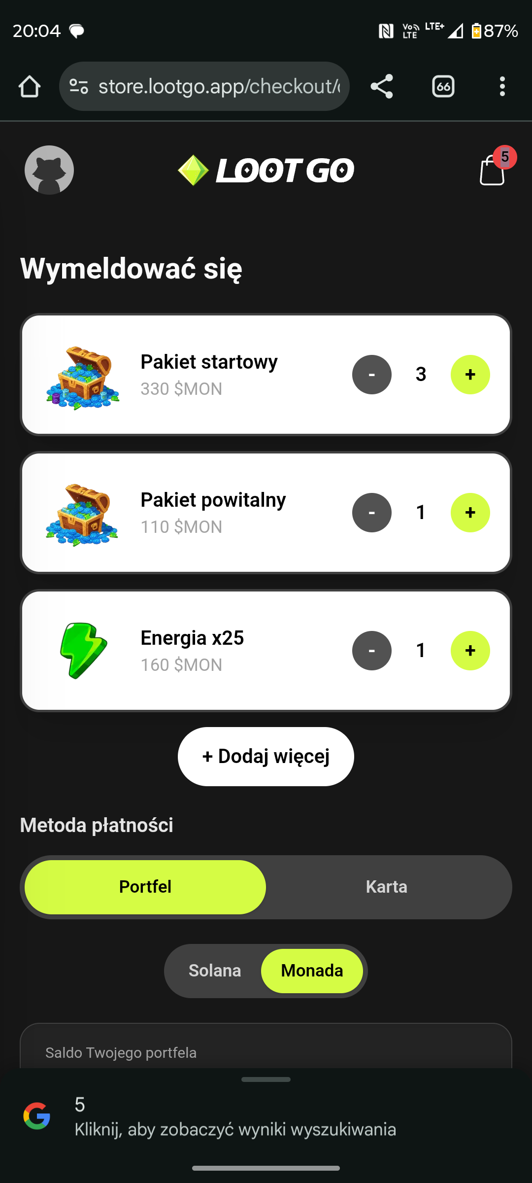 miron83 Napisano 14 Listopad 2025 Zgłoszenie Podziel się Napisano 14 Listopad 2025 (edytowane) Natrafiłem ostatnio na taką gierkę. Co z niej będzie to zobaczymy w praktyce Info o niej poniżej Odblokuj przygody w prawdziwym świecie z LootGO! Wyjdź na zewnątrz i odkryj ukryte skarby wokół siebie! LootGO zmienia Twoje codzienne spacery w zabawne zadania - odkrywaj okolicę, zbieraj skrzynie ze skarbami i odblokowuj niespodzianki po drodze. Główne funkcje Spaceruj, aby odkryć - Twoja okolica staje się planszą do gry pełną skrzyń ze skarbami czekających na odnalezienie. Codzienne kamienie milowe - Świętuj każde 1000 kroków, zdobywając zabawne odblokowywane przedmioty, które motywują Cię do działania. Zbieraj i odblokowuj - Każda skrzynia ze skarbami kryje cyfrową niespodziankę. Otwieraj je, aby powiększyć swoją kolekcję. Dlaczego pokochasz LootGO Łatwy start, przyjemna eksploracja - Prosta zabawa dla każdego, z głębią dla codziennych poszukiwaczy przygód. Graj w trakcie gry - Gra toczy się z Tobą przez cały dzień - nie musisz przyklejać się do telefonu. Zobacz swój świat inaczej - Zmień swoje miasto w plac zabaw eksploracji i odkryć. Zastrzeżenie LootGO to gra mobilna stworzona z myślą o rozrywce, eksploracji i zdrowej aktywności. Wszystkie elementy aplikacji są przeznaczone do osobistego odbioru i użytku. Dołącz do mnie w LootGO i zarabiaj kryptowaluty, chodząc! https://www.lootgo.app/ Użyj mojego kodu: miron830 iOS: https://apps.apple.com/app/id6740266137 Android: https://play.google.com/store/apps/details?id=com.lootgo.app Wszystkie aktualizacje na bieżąco https://x.com/lootgo_official/status/1983148577728930154 Odpowiedzi na pytania # Portfele ## Jaki jest mój portfel główny? - Kiedy tworzysz konto LootGO, tworzymy dla Ciebie wbudowany portfel, w którym będziesz otrzymywać nagrody onchain. To Twój portfel główny (domyślny). ## Jak podłączyć inny portfel? - Możesz podłączyć inny portfel, aby zweryfikować posiadanie NFT, członkostwa, aktywów itp. - Możesz podłączyć inny portfel, przechodząc do zakładki "Portfel" → "Ustawienia" → "Połącz portfel". ## Dlaczego nie widzę zawartości mojego portfela (nie należącego do LootGO)? - Aby uniknąć nieporozumień, wyświetlamy tylko zawartość portfela głównego, czyli portfela LootGO. Drugi, podłączony portfel "Zweryfikowany" służy wyłącznie do weryfikacji zasobów, członkostwa i posiadania NFT. # Jak przenieść moje nagrody do innego portfela? - Możesz wyeksportować swój portfel, przechodząc do zakładki "Portfel" → "Ustawienia" → "Eksportuj klucze" # Portfel ## Moje tokeny Monad się nie wyświetlają - Czasami RPC, którego używamy, zawodzi. Dopóki tego nie naprawimy, spróbuj odświeżyć stronę, przesuwając palcem w dół kilka razy. - Daj nam znać, ale zapewniamy, że Twoje tokeny są dostępne, ponieważ tokeny są wysyłane z powietrza do wbudowanego portfela. # Nagrody ## Jak mogę otrzymać booster 1,5x dla posiadaczy Seekera? 1. Przejdź do zakładki "Portfel" → Ustawienia → Połącz portfele 2. Połącz portfel, w którym znajduje się token .skr soulbound z Twojego Seekera. ## Do czego służą niebieskie losy? - Niebieskie losy to nagrody w loterii przyznawane za otwieranie skrzyń ze skarbami. ## Jak mogę wziąć udział w cotygodniowych losowaniach? 1. Możesz przejść do zakładki "Nagrody", aby znaleźć cotygodniowe losowania. Losowania, w których można wziąć udział za pomocą losu 2. Za pomocą suwaka wybierz liczbę losów, które chcesz wziąć udział w danym losowaniu. ## Jak wygrać nagrody w losowaniu? - Po wzięciu udziału w losowaniu i zamknięciu terminu zgłoszeń do losowania (godzina zamknięcia jest podana na stronie nagrody), w następny wtorek odbędzie się losowanie nagród na żywo podczas naszego spotkania społeczności LootGO na Twitterze. ## Kiedy zostaną ogłoszone nagrody? - Losowania odbywają się na żywo podczas cotygodniowych spotkań społeczności LootGO (zwykle) we wtorki - link znajdziesz na naszym koncie na Twitterze (https://x.com/lootgo_official). Uwaga: Jeśli bierzesz udział w losowaniu po raz pierwszy, zostaniesz poproszony o podanie nazwy użytkownika na Twitterze lub Discordzie, abyśmy mogli się z Tobą skontaktować zarówno w aplikacji, jak i za pośrednictwem kanałów społecznościowych. ## Jak otrzymam powiadomienie o nagrodach? - Podczas pierwszego udziału w losowaniu zostaniesz poproszony o podanie nazwy użytkownika na Twitterze lub Discordzie, abyśmy mogli się z Tobą skontaktować zarówno w aplikacji, jak i za pośrednictwem kanałów społecznościowych. aplikacji, a także za pośrednictwem kanałów społecznościowych. - Historię nagród możesz również zobaczyć w zakładce "Portfolio" w aplikacji → "Ustawienia" → Historia nagród ## Jak otrzymam/odebiorę nagrody? - Skrzynia skarbów - Po wygraniu nagrody w Skrzyni skarbów, znajdziesz ją w zakładce "Portfolio" → "Nagrody". Możesz kliknąć przedmiot, a metoda realizacji zostanie wyświetlona. - Losowania - Metoda realizacji zostanie wyświetlona na stronie losowania nagrody. ## Czym są te tokeny, które wygrałem otwierając skrzynię skarbów? - Otwarcie skrzyń skarbów zapewnia niewielkie ilości tokenów - znajdziesz je w zakładce "Portfolio" w aplikacji → "Nagrody". # Mapa LootGO ## Moja mapa się nie wyświetla - Jeśli znajdujesz się w Chinach i mapa nie działa, spróbuj włączyć VPN - to powinno pomóc w jej wyświetleniu. Ponownie ## Do czego służą kule? - Kule w różnych kolorach służą do wykonywania misji, które zapewniają bonusowe bilety. - Za ukończenie kul otrzymasz następujące bonusowe bilety: - Szaro-białe: 100 biletów. - Pozostałe kolory (czerwony, niebieski, żółty, zielony, biały, jasnoniebieski): 300 biletów. ## Dlaczego nie widzę żadnych skrzyń z łupami na mapie? - Możesz nacisnąć przycisk skanowania (w prawym dolny