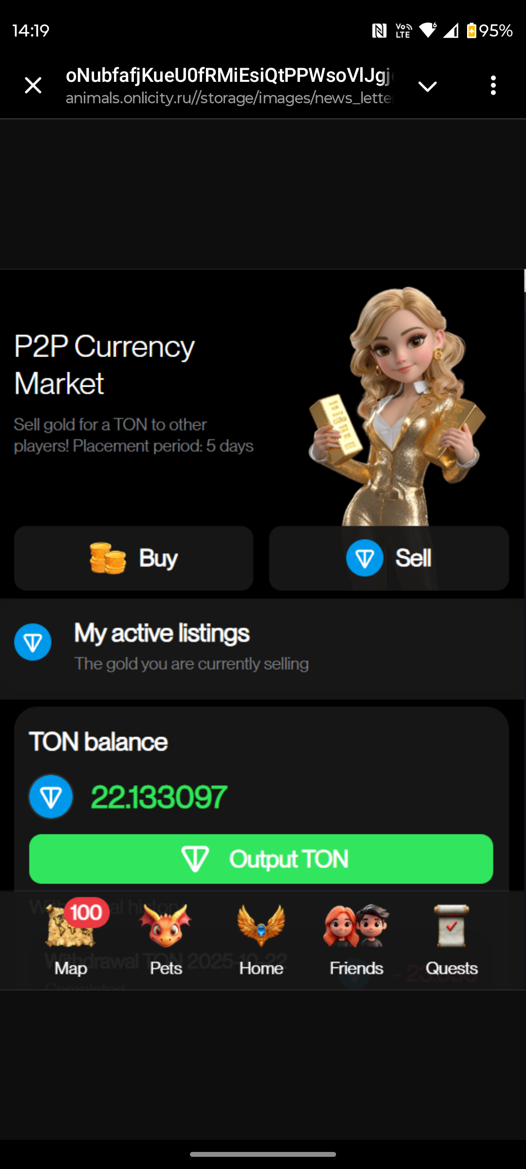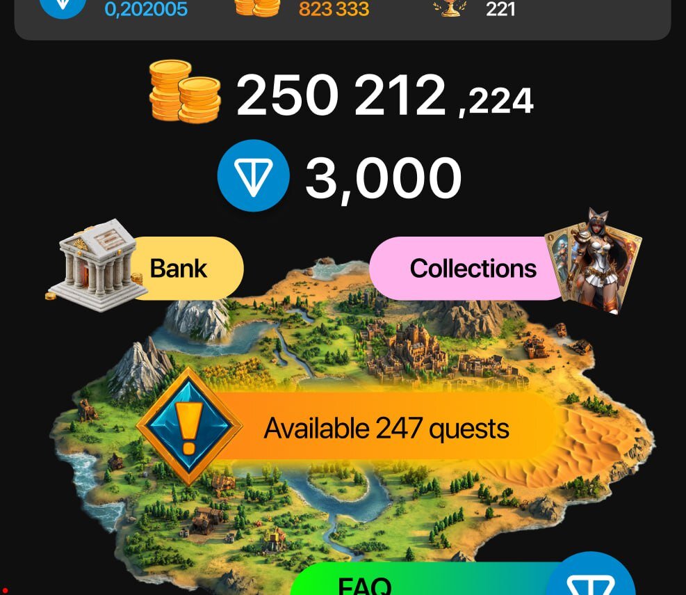 💰Dostępna jest nowa sekcja „Bank”, w której możesz wymienić zdobyte złoto na TON po wewnętrznym kursie wymiany w Quest Animals oraz sprzedawać złoto na rynku walut P2P innym graczom w zamian za TON.