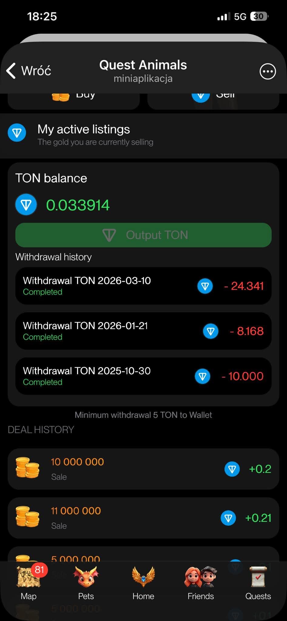 miron83 Napisano 20 Styczeń Autor Zgłoszenie Podziel się Napisano 20 Styczeń Od suportu info odnośnie nowości Sprawdź swoje saldo złota. Złoto można wymienić lub sprzedać za TON! ?Dostępna jest nowa sekcja „Bank”, w której możesz wymienić zarobione złoto na TON po wewnętrznym kursie Quest Animals i sprzedać złoto na Rynku Walut P2P innym graczom za TON. ? Czas rozbudować swoją armię! ? ? Dodaj nową postać i zdobądź więcej złota i TON! Przypominamy, że złoto można wymienić na TON. ? → ? Tak! Wymień i wypłać! ? → ? Odnośnik do komentarza Udostępnij na innych stronach More sharing options...