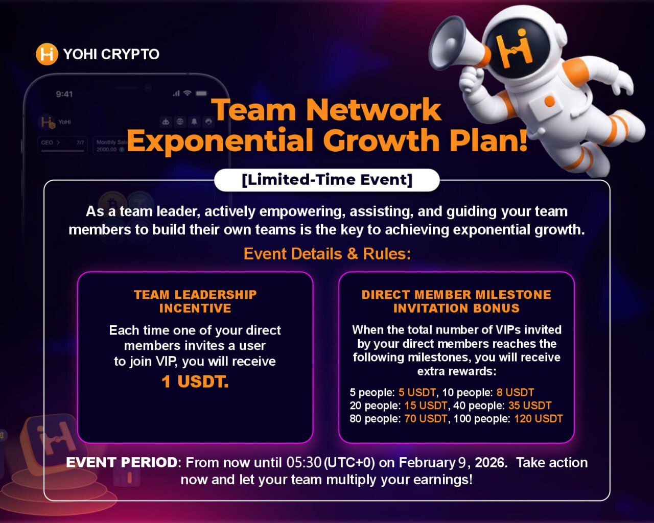 miron83 Napisano 3 Luty Autor Zgłoszenie Podziel się Napisano 3 Luty (edytowane) Dodatkowe info z chata Wydarzenie ograniczone czasowo】 Wspieraj, wspieraj i kieruj członkami swojego zespołu, aby zbudowali własną sieć, która zapewni im wykładniczy wzrost! 【Szczegóły wydarzenia】 1. Nagrody dla Liderów Zespołu - Za każdym razem, gdy Twój bezpośredni członek (poziom 1) zaprosi nowego użytkownika VIP, otrzymasz 1 USDT. 2. Nagrody za zaproszenie członka za osiągnięcie kamienia milowego - 5 VIP-ów ➡️ 5 USDT - 10 VIP-ów ➡️ 8 USDT - 20 VIP-ów ➡️ 15 USDT - 40 VIP-ów ➡️ 35 USDT - 80 VIP-ów ➡️ 70 USDT - 100 VIP-ów ➡️ 120 USDT 【Czas wydarzenia】 Kończy się 9 lutego 2026 r. o godzinie 05:30 (UTC+0). YOHI działa już od ponad roku Edytowane 5 Luty przez miron83 Odnośnik do komentarza Udostępnij na innych stronach More sharing options...
