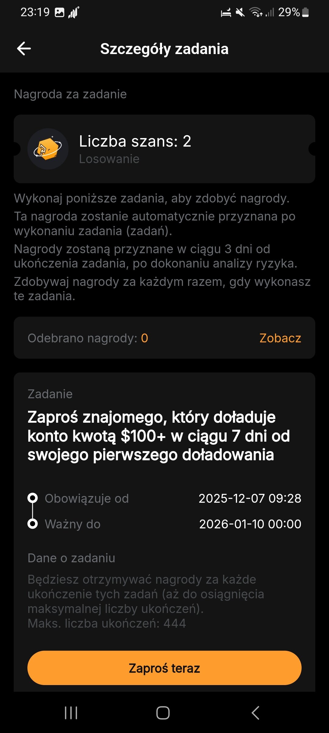 Promo Napisano 8 Grudzień Zgłoszenie Podziel się Napisano 8 Grudzień (edytowane) Oboje otrzymujemy losy ! + Bonusy startowe czyli 5, 10, 100$ Bonusu za proste zadania typu doładowanie i trade, wszystko opisane przejrzyście na stronie jak i w apce. Dodatkowo kampania tradingowa do końca miesiąca 😃 https://www.bybit.eu/invite?ref=O3WDRVZ Edytowane 8 Grudzień przez Promo Odnośnik do komentarza Udostępnij na innych stronach More sharing options...