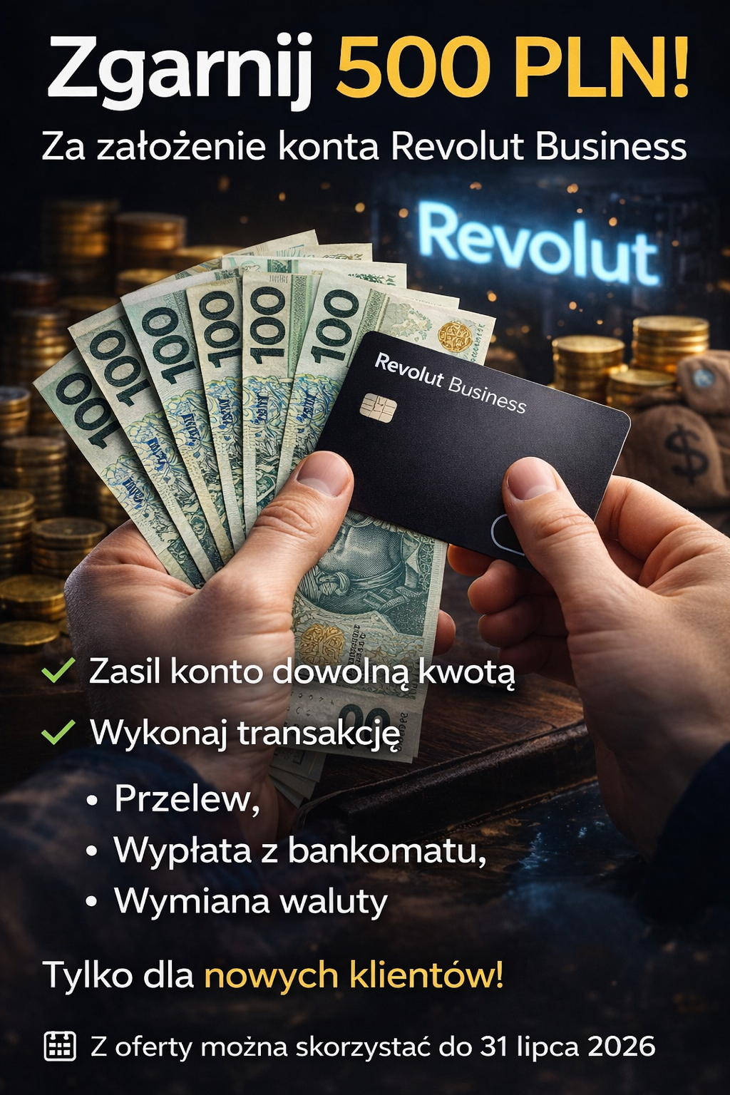 Doradca Napisano 30 Grudzień 2025 Zgłoszenie Podziel się Napisano 30 Grudzień 2025 (edytowane) 🚀 500 zł za konto firmowe! Otwórz konto w Revolut Business od Revolut i zgarnij 500 PLN premii. Co trzeba zrobić, aby otrzymać 500 zł? ✅ Zarejestrować konto firmowe z linku promocyjnego 👉 Odbierz 500 złotych rejestracja 👈 ✅ Zasilić konto dowolną kwotą ✅ Wykonać minimum 1 transakcję: przelew, wypłata środków w bankomacie, wymiana waluty 📌 Promocja dotyczy nowych klientów. 📅 Z oferty można skorzystać do 31 lipca 2026 r. ℹ️ Obowiązują opłaty subskrypcyjne zgodnie z regulaminem kont firmowych. Jeśli prowadzisz firmę i szukasz nowoczesnego konta wielowalutowego z kartami fizycznymi i wirtualnymi — to dobra okazja, by zgarnąć dodatkowe 500 zł na start. Edytowane 3 godziny temu przez Doradca Odnośnik do komentarza Udostępnij na innych stronach More sharing options...