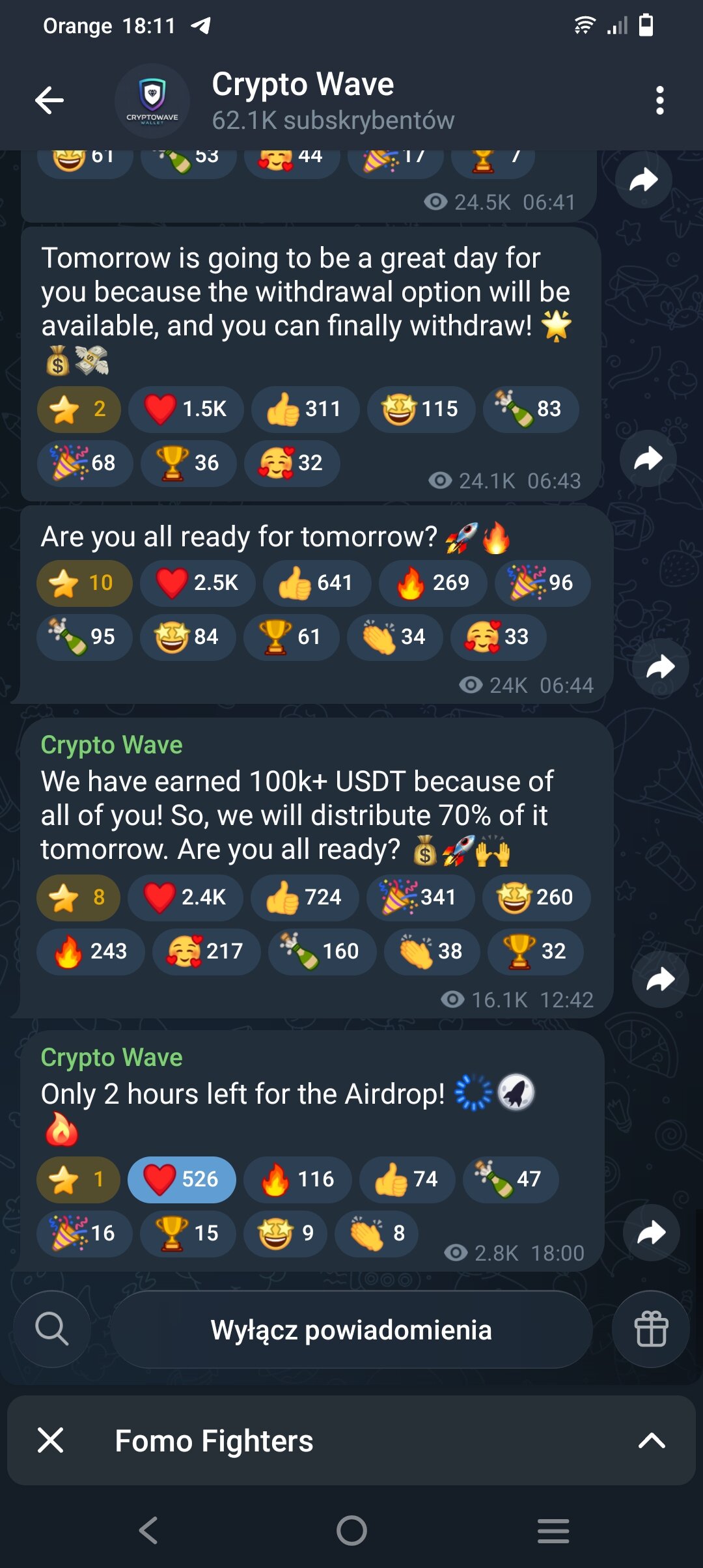 foxer4 Napisano Poniedziałek o 17:13 Autor Zgłoszenie Podziel się Napisano Poniedziałek o 17:13 Według ich telegram zostało 2 godziny, aby dolaczyc do airdropa.. Odnośnik do komentarza Udostępnij na innych stronach More sharing options...