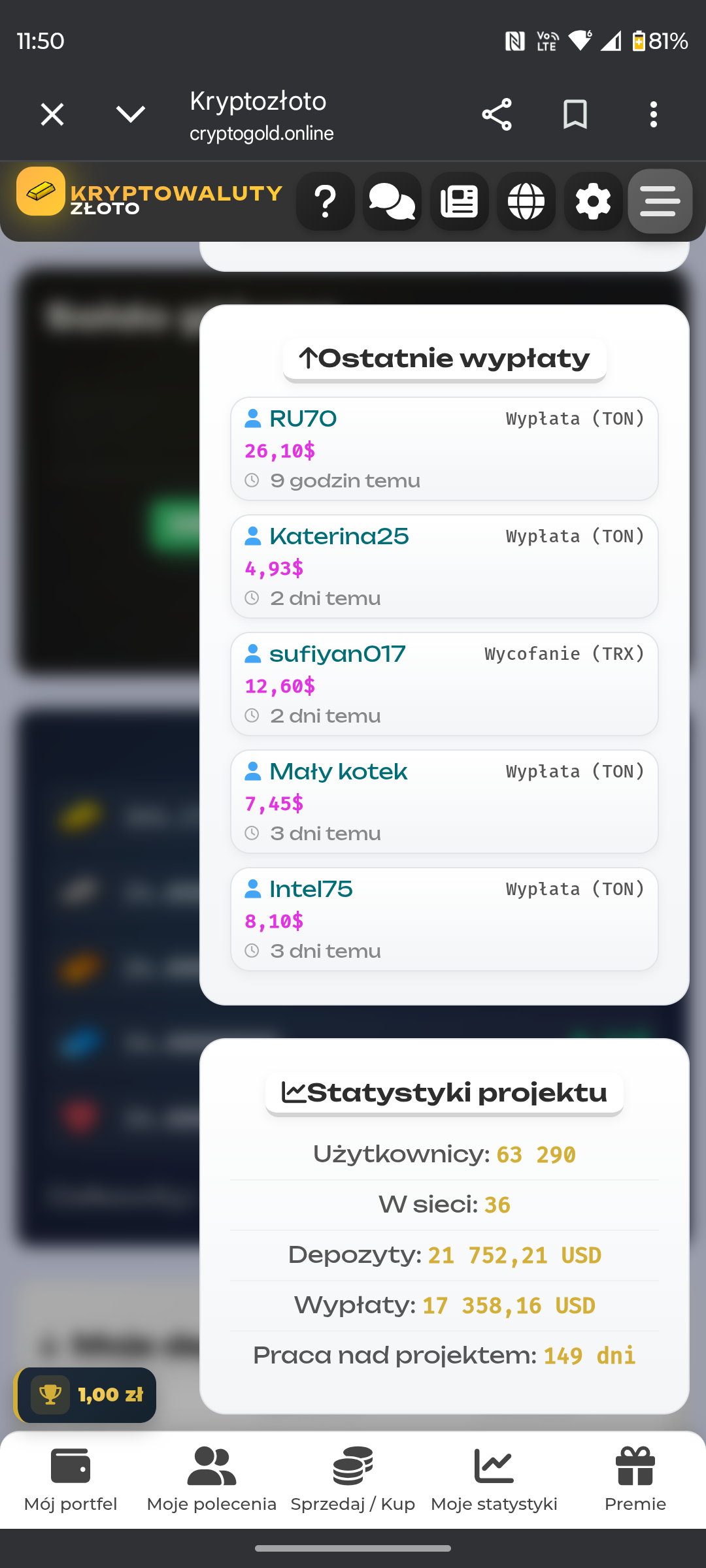 miron83 Napisano 17 Styczeń Autor Zgłoszenie Podziel się Napisano 17 Styczeń Odpowiedzi na pytania od suportu Czym jest Crypto Gold? Crypto Gold to projekt kryptowalutowy z wewnętrznymi aktywami cyfrowymi w postaci monet: złota, srebra, brązu, platyny i diamentów. Wartość aktywów rośnie o 3% dziennie , a nawet o 100% miesięcznie. Możesz kupić monety w dowolnym momencie, a następnie odczekać miesiąc, a Twoje monety będą warte 2 razy więcej. Jak mogę zarabiać? Możesz kupić dostępne monety od innych użytkowników lub otrzymać monety poprzez system poleceń. Cena monet rośnie każdego dnia, a Ty możesz je sprzedać po dzisiejszej cenie, blokując zysk. Możesz również zarabiać od zera dzięki systemowi poleceń: za zarejestrowanie 1 poleconej osoby otrzymasz 0,10$ w monetach, a także 5% od kwoty pierwszego depozytu poleconej osoby, a dodatkowo zarabiasz 50% od kosztów wszystkich podwyżek limitów przez poleconych. Czy mogę zarabiać od zera? Tak! Możesz zacząć zarabiać, zbierając bonusy, zapraszając poleconych i zarabiając w naszym bocie Telegram zupełnie od zera. 🔗 BOT CRYPTO GOLD Czy mogę stracić środki? Nie! Aktywa stale rosną i nigdy nie tracą na wartości. Wpłacasz pieniądze, kupujesz monety, czekasz, aż wzrosną, i sprzedajesz z zyskiem. Jak projekt zarabia? Projekt otrzymuje 10% prowizji od każdej wypłaty użytkownika oraz 50% kosztów zakupów zwiększających limity dokonywanych przez użytkowników. Środki te pokrywają koszty projektu, pomagają nowym użytkownikom, umożliwiają organizację konkursów i rozwój projektu. Dlaczego mogę Ci zaufać? Projekt jest całkowicie przejrzysty i nie ma ryzyka bankructwa ze względu na swoje zasady, gdyż wszystkie transakcje odbywają się między uczestnikami. Mamy 🔗 TELEGRAM CHAT, gdzie możesz sprawdzić wiarygodność, a w prawym menu możesz zobaczyć najnowsze wpłaty, wypłaty i zakupy użytkowników. Możesz także zobaczyć statystyki każdego użytkownika, klikając na niego i na jego sieci społecznościowe, jeśli zostały zapisane. Jak długo będzie trwał projekt? Projekt jest zaplanowany na długoterminową działalność. Minimalny cel — 10 lat , w tym czasie Ty i Twoi znajomi możecie zarobić pokaźną sumę. Projekt jest stale udoskonalany, aby każdy użytkownik mógł zarabiać. Odnośnik do komentarza Udostępnij na innych stronach More sharing options...