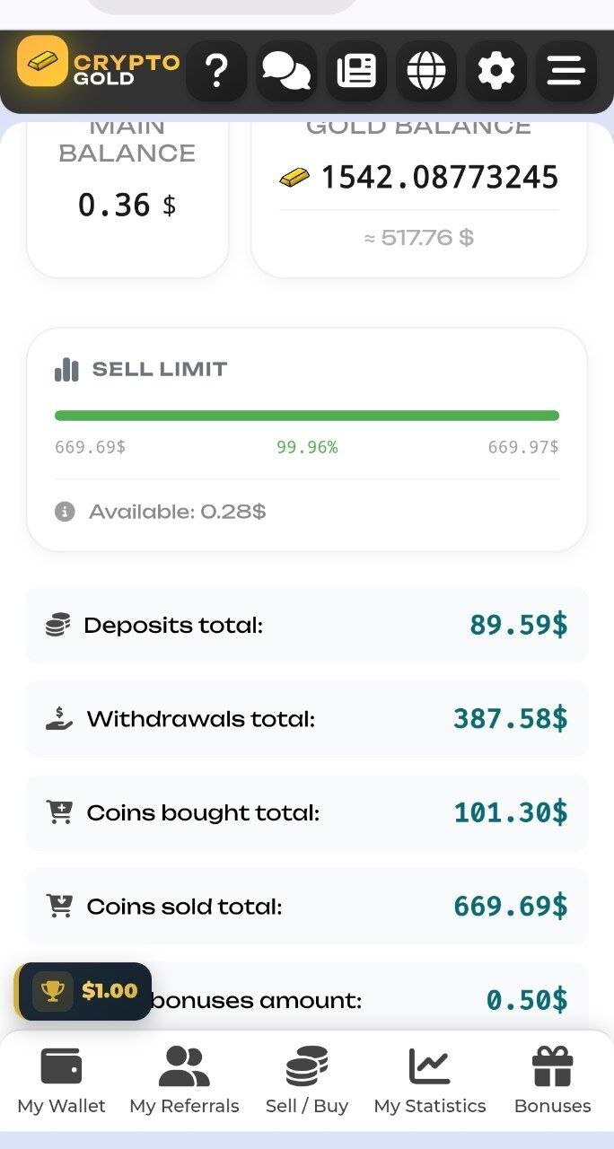 Crypto Gold to projekt kryptowalutowy z wewnętrznymi aktywami cyfrowymi w postaci monet: złota, srebra, brązu, platyny i diamentów. Wartość aktywów rośnie o 3%