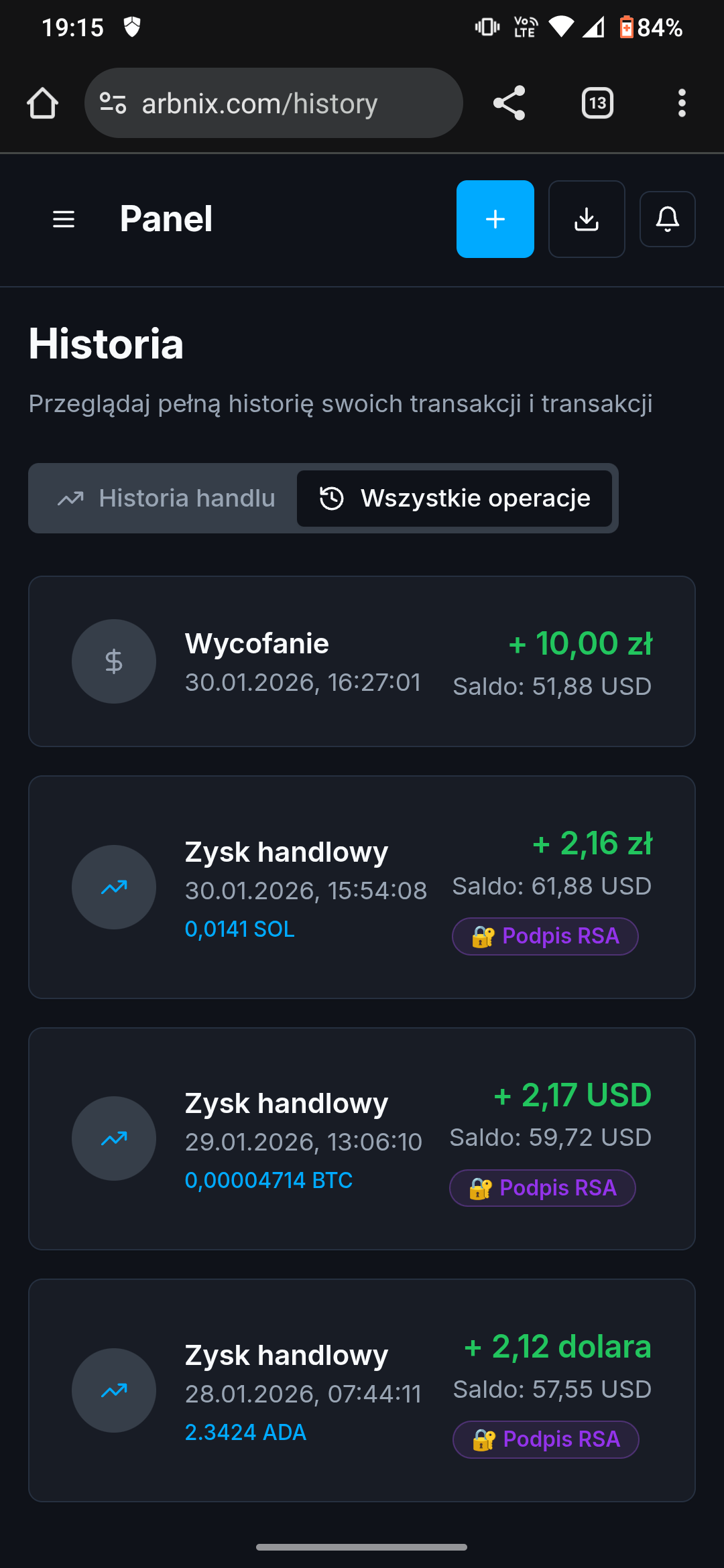 Widzisz nie tylko zyski, ale i weryfikację on-chain.
