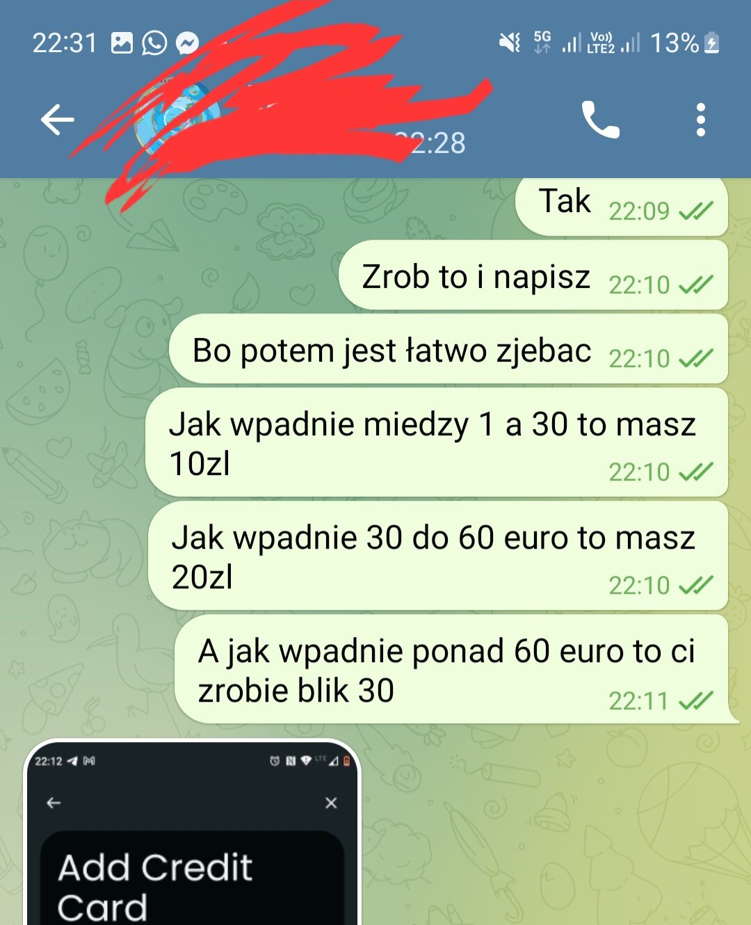 cryptoget Napisano wczoraj o 21:35 Autor Zgłoszenie Podziel się Napisano wczoraj o 21:35 Dorzucam od siebie 10 do 30zl w zależności od bonusu który wpadnie. Jeśli już Coś że mną robiłeś i jesteś zaufany to pożyczam na depozyt kontakt WhatsApp 576 227 858 telegram 576 227 858 oraz zapraszam do grupy z apkami : https://t.me/Crypto_Earn_Pl wrzucam również bonusy od siebie za osiągnięcie kolejnych subskrypcji . Zapraszam do subskrypcji i zarabiania Odnośnik do komentarza Udostępnij na innych stronach More sharing options...