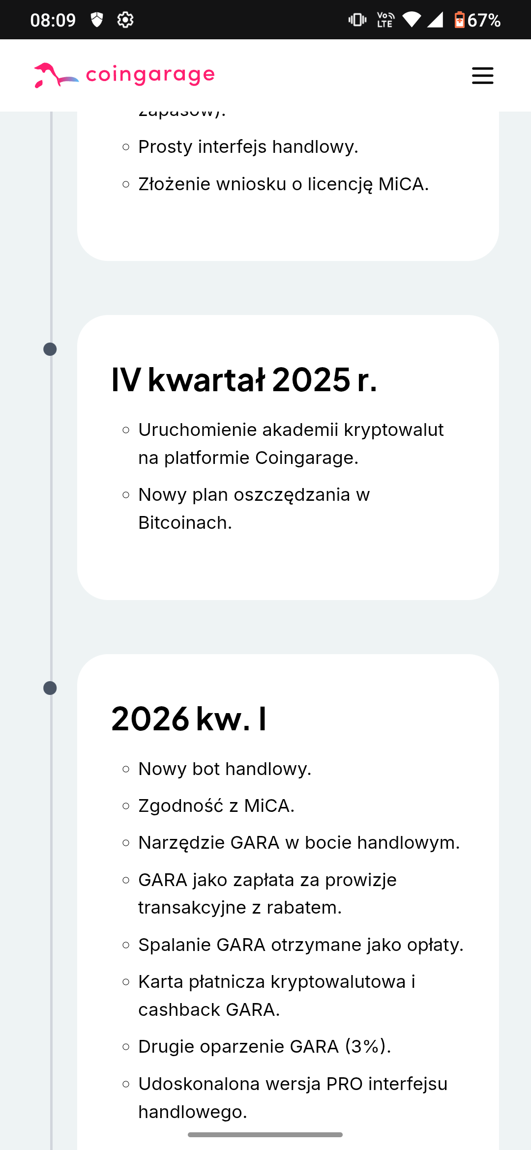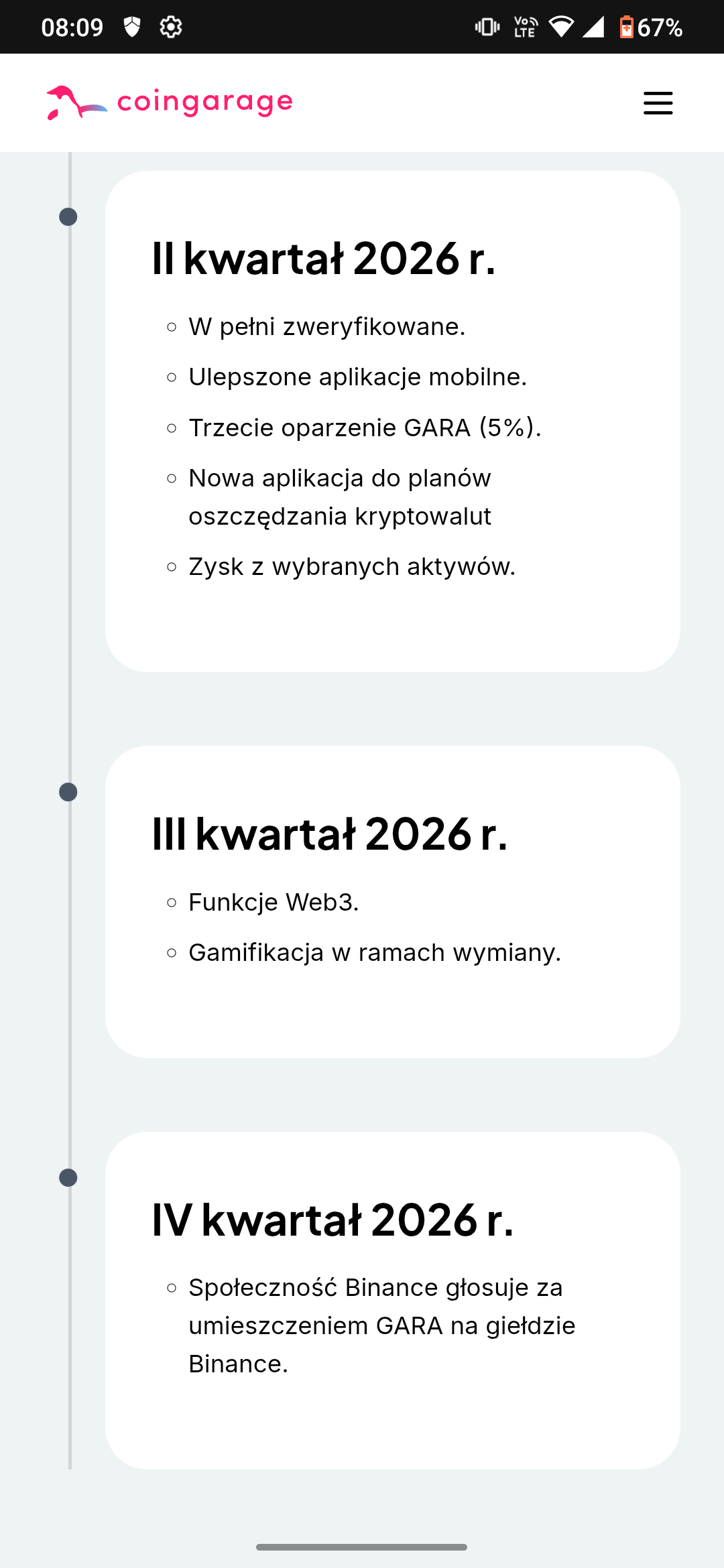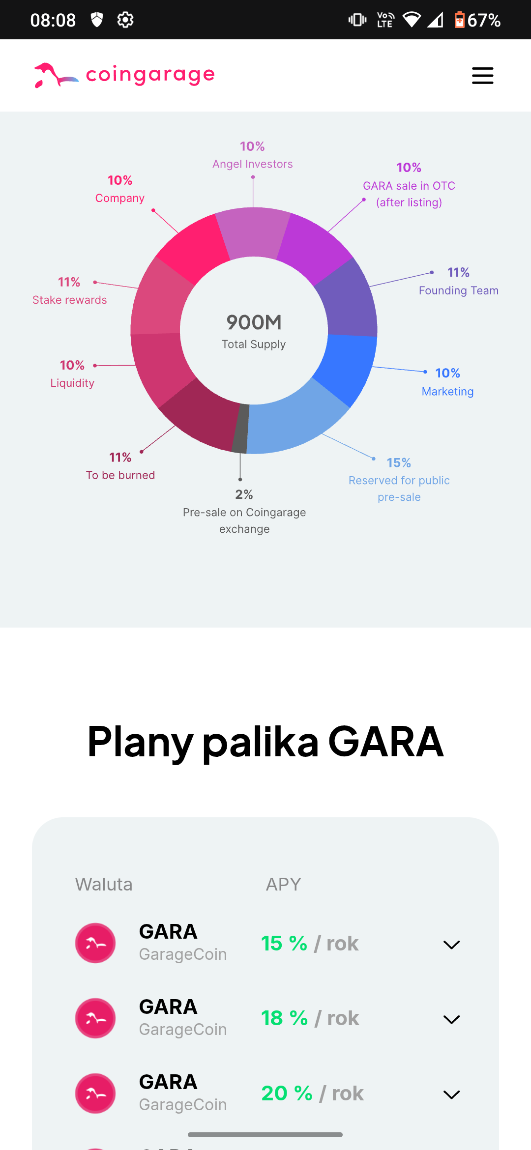 miron83 Napisano 15 godzin temu Zgłoszenie Podziel się Napisano 15 godzin temu Kolejny temacik odpalony tym razem z tokenem Gara Info o nim poniżej od suportu Czym jest GARA? Token $GARA jest sercem Coingarage, naszej szybko rozwijającej się europejskiej giełdy kryptowalut. Został zaprojektowany, aby nagradzać aktywnych użytkowników, obniżać koszty handlu i być wykorzystywany w szerokiej gamie produktów, jednocześnie promując długoterminowy wzrost wartości. Jego maksymalny wolumen wynosi 900 milionów tokenów – a dzięki regularnemu spalaniu tokenów ich liczba będzie się zmniejszać co miesiąc, zwiększając ich wartość. Główne cechy i zastosowania Staking z roczną stopą zwrotu do 31%: Umożliwia generowanie pasywnego dochodu za posiadanie tokenów. Deflacyjne spalanie tokenów: 20% tokenów opłat jest okresowo spalane, co zmniejsza ich podaż. Użyteczność w ekosystemie giełdowym: GARA będzie wykorzystywana do zasilania produktów, udzielania zniżek na opłaty i uzyskiwania dostępu do ekskluzywnych funkcji. Ekskluzywne korzyści dla posiadaczy kart: zniżki do 20% na opłaty, nagrody VIP i dostęp premium do wiadomości. Mechanizm spustowy GARA Mechanizm spalania zmniejsza całkowitą podaż tokenów GARA z pierwotnych 900 milionów do 200 milionów. Każdego miesiąca 20% tokenów uzyskanych z opłat jest spalane, stopniowo wycofując je z obiegu. Ten deflacyjny model działa podobnie jak skup akcji, gdzie zmniejszenie dostępnej podaży może potencjalnie zwiększyć wartość tokena, sprzyjając tym samym jego szerszemu przyjęciu i wykorzystaniu. Spalamy 20% GARA co miesiąc zarobione na opłatach Dopóki nie zostanie tylko 200 milionów GARA z pierwotnych 900 milionów Rejestracja https://coingarage.io/ref/EI1TNA Czym jest układanie w stosy? Staking to proces, w którym tymczasowo blokujesz swoje kryptowaluty. W ten sposób przyczyniasz się do funkcjonowania i rozwoju projektu giełdy i możesz otrzymać nagrody w postaci dodatkowych tokenów GARA. Zalety Dochód: Potencjalna atrakcyjna roczna stopa wzrostu (np. 4-15% rocznie), która może przewyższyć tradycyjne konta oszczędnościowe lub lokaty terminowe. Dochód pasywny: Staking pozwala na zarabianie dochodu pasywnego — wystarczy trzymać kryptowalutę GARA i pozwolić jej pracować, bez konieczności aktywnego handlu. Wsparcie sieciowe: Dzięki Stake przyczyniasz się do bezpieczeństwa i decentralizacji sieci GARA. Nagrody są formą podziękowania za udział w walidacji transakcji. Adres Krakovská 583/9 Praga 1, Nové Město 110 00 Praga, Czechy +420 778 116 516 (od 9:00 do 17:00) wsparcie@coingarage.io Odnośnik do komentarza Udostępnij na innych stronach More sharing options...