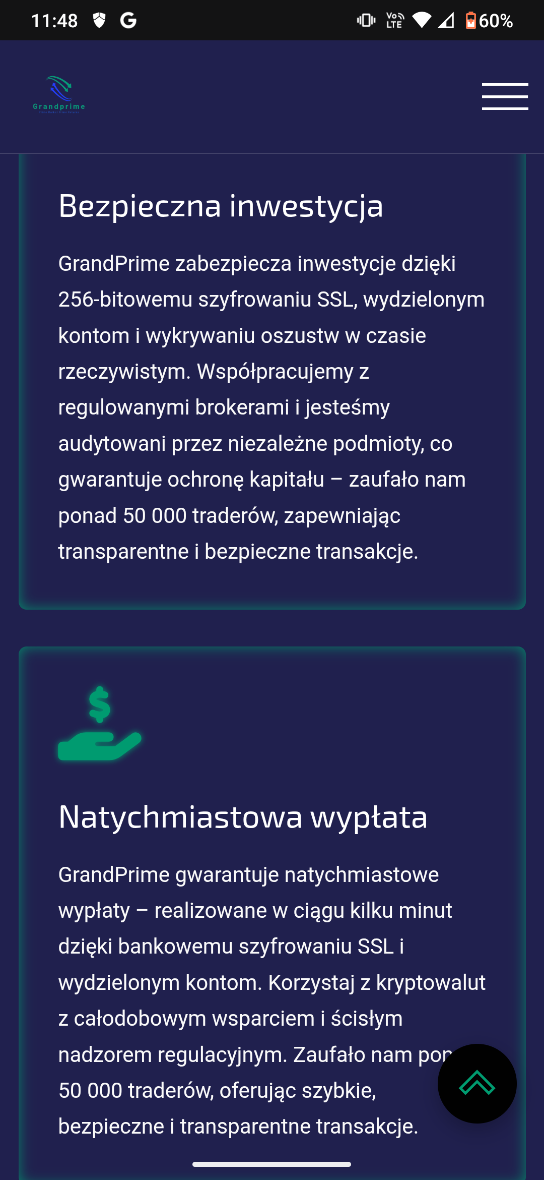 miron83 Napisano 3 Kwiecień Zgłoszenie Podziel się Napisano 3 Kwiecień (edytowane) Grandprime info od admina poniżej GrandPrime to zautomatyzowana platforma handlowa, na której członkowie aktywują zweryfikowane boty handlowe, które handlują w Twoim imieniu. Zarabiasz codziennie i możesz wypłacić zyski w dowolnym momencie po ich zaksięgowaniu. Jak to działa w prostych słowach: 1. Zarejestruj konto 2. Wpłać depozyt 3. Aktywuj bota zgodnie ze swoim planem 4. Bot handluje automatycznie i generuje dzienne zyski 5. Możesz wypłacić zyski lub reinwestować po zakończeniu cyklu. Jeśli kiedykolwiek utkniesz, zadaj pytanie @GrandPrime_support1, a członkowie zawsze są gotowi pomóc ? Strona internetowa: https://grandixprime.com Rejestracja 👇👇👇👇👇👇👇👇👇👇👇👇👇👇 https://grandixprime.com?reference=miron83 Jak zacząć korzystać z GrandPrime – prosty przewodnik krok po kroku ✨ Krok 1 – Utwórz konto lub zaloguj się Przejdź do ? https://grandixprime.com/user/dashboard Jesteś już zarejestrowany? Wystarczy zalogować się, podając swoje dane. Nowy tutaj? Wypełnij krótki formularz rejestracyjny, podając swój adres e-mail, nazwę użytkownika i hasło. Potwierdź swój adres e-mail. ✨ Krok 2 – Zasil swój portfel Przed aktywacją dowolnego planu należy dokonać wpłaty. W panelu kliknij w prawym górnym rogu i wybierz „Wpłać”. Wybierz metodę płatności (USDT TRC20, USDT BEP20, SOL, ETH). Wprowadź żądaną kwotę. Zostanie wygenerowany unikalny adres portfela — skopiuj go dokładnie. Wyślij środki z portfela kryptowalutowego lub giełdy (Binance, Trust Wallet, Kraken itp.). ✅ Większość wpłat jest widoczna w ciągu kilku minut (prędkość sieci może się różnić). ✨ Krok 3 – Aktywuj plan ⚡ Ważne: Samo wpłacenie depozytu nie oznacza rozpoczęcia zarabiania! Przejdź do sekcji Plany w panelu. Sprawdź dostępne boty i ich dzienne zyski. Wybierz ten, który odpowiada Twojemu budżetowi i celom. Kliknij „Aktywuj plan” i potwierdź. ? Twój bot rozpoczyna cykl natychmiast po aktywacji. ✨ Krok 4 – Śledź swoje zyski Zyski są naliczane codziennie w oparciu o wybrany plan. Możesz wszystko przejrzyście przeglądać w dzienniku inwestycyjnym. ? Nie musisz nic robić ręcznie, bot AI handluje za Ciebie automatycznie. ✨ Krok 5 – Wypłać w dowolnym momencie Gdy będziesz gotowy do wypłaty: Przejdź do sekcji Wypłata w panelu. Wprowadź kwotę, wklej adres portfela i potwierdź. Wypłaty są zazwyczaj przetwarzane w ciągu 20–60 minut. ✨ Krok 6 – Opcjonalnie: Oprocentowanie kapitalizowane i wzrost Zamiast wypłacać codziennie, możesz reinwestować swoje dzienne zyski w plany o wyższym poziomie. ? Oprocentowanie kapitalizowane szybciej buduje kapitał i zwiększa długoterminowe zyski. ? Wskazówki dotyczące wsparcia Zawsze sprawdzaj adresy portfeli przed wysłaniem środków. Zacznij od kwoty, która Ci odpowiada, a następnie zwiększaj ją. Sprawdzaj datę wygaśnięcia planu, aby móc go odnowić lub uaktualnić na czas. Boty Prime: ? Prime Vault – Zyskuj 3% dziennie przez 4 dni ? Min.: 30 USDT | Maks.: 800 USDT ? Prime Spark – Zyskuj 5% dziennie przez 15 dni ? Min.: 500 USDT | Maks.: 900 USDT ? Prime Wave – Zyskaj 8% dziennie przez 5 dni ? Min.: 1000 USDT | Maks.: 50000 USDT ? Inteligentniejsza sztuczna inteligencja. Większe zyski. Większa elastyczność. PRIME MARKET PRIME RETURN ?✨ Edytowane 2 godziny temu przez miron83 Odnośnik do komentarza Udostępnij na innych stronach More sharing options...