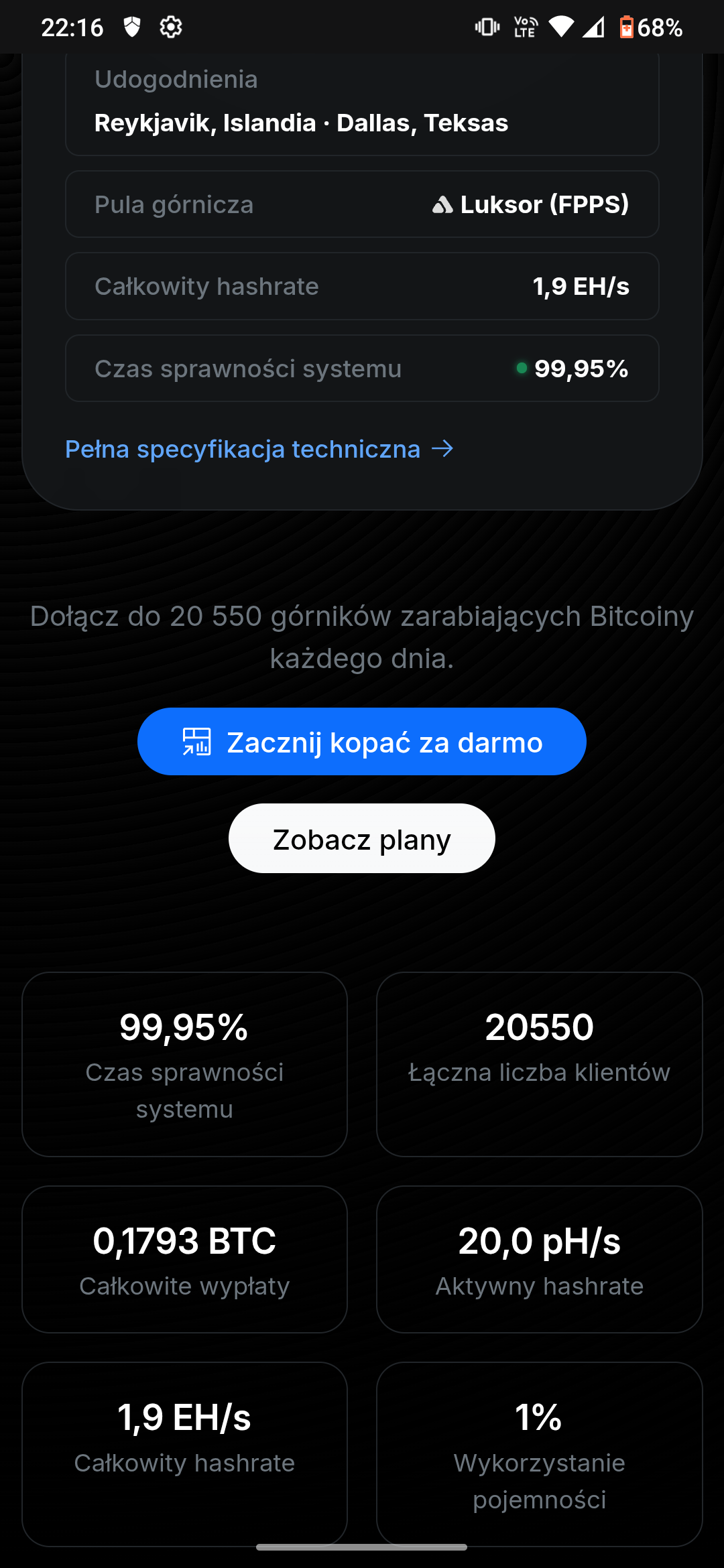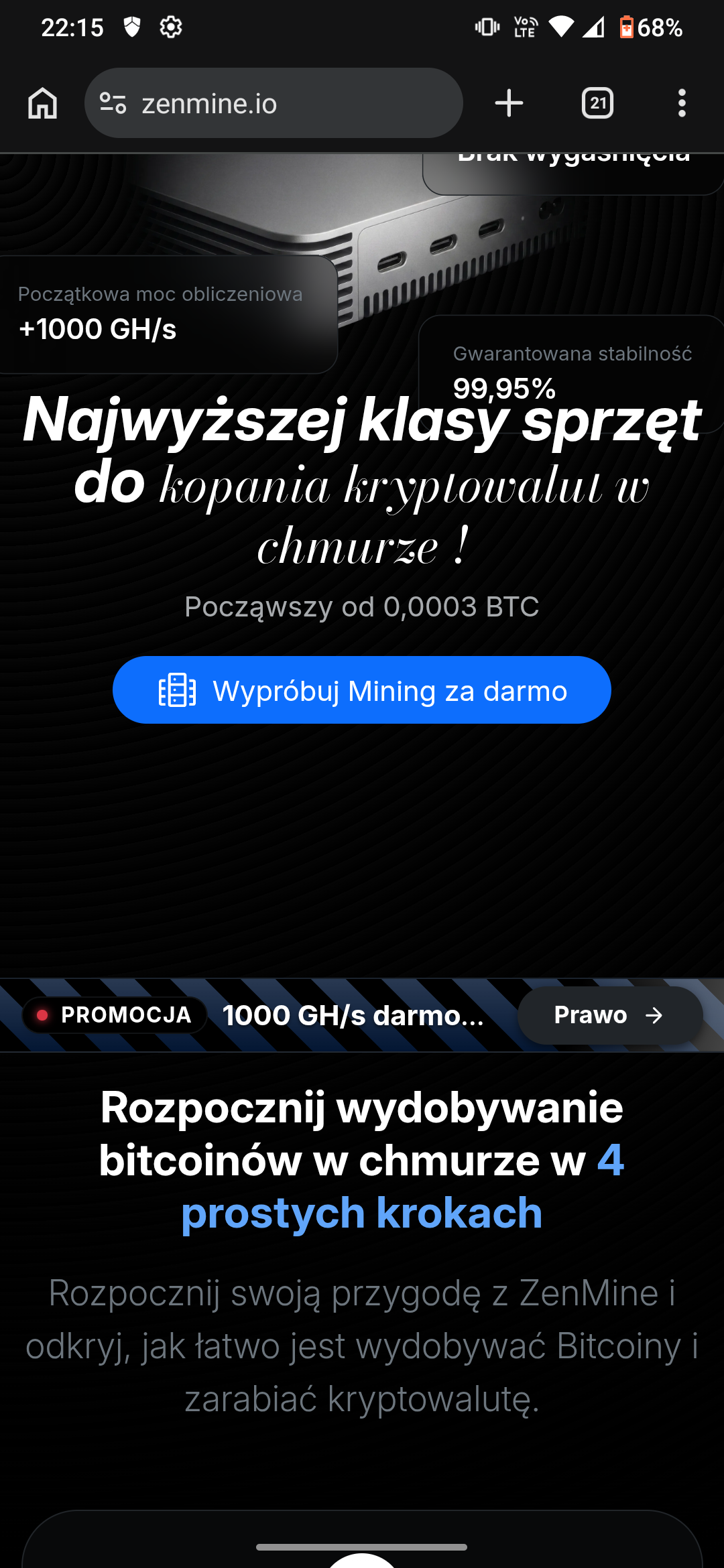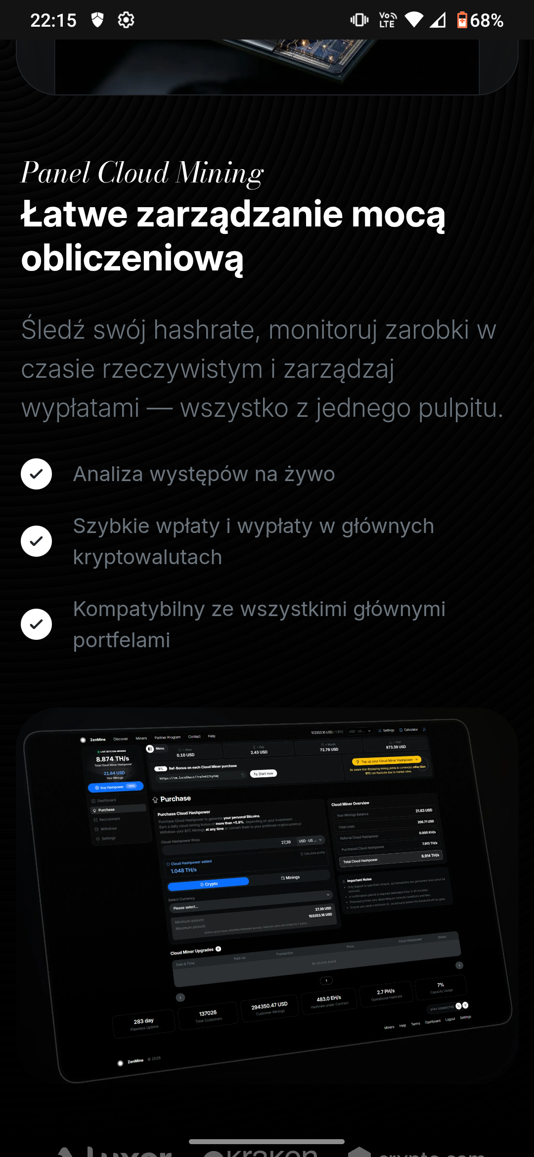 miron83 Napisano 2 godziny temu Zgłoszenie Podziel się Napisano 2 godziny temu Odpalona kopareczka z darmową mocą na start Info poniżej od nich Witamy w ZenMine. Po miesiącach prac rozwojowych z radością ogłaszamy oficjalne uruchomienie naszej platformy do kopania w chmurze nowej generacji. ZenMine powstało z jednym celem — aby uczynić kopanie Bitcoinów dostępnym dla każdego, bez konieczności zarządzania sprzętem, energią elektryczną czy konfiguracją techniczną. ZenMine Inc. to zarejestrowana firma z siedzibą w Nowym Jorku, USA. Prowadzimy infrastrukturę kopalnianą klasy korporacyjnej w wielu centrach danych z gwarantowaną dostępnością na poziomie 98,99% — dostarczając moc kopania na poziomie instytucjonalnym bezpośrednio do Ciebie. Niezależnie od tego, czy jesteś nowicjuszem w świecie kryptowalut, czy doświadczonym inwestorem, ZenMine daje Ci natychmiastowy dostęp do prawdziwego sprzętu kopalnianego bez żadnej konfiguracji. Co wyróżnia ZenMine: • Każdy nowy użytkownik otrzymuje 1000 GH/s darmowej mocy haszującej — bez konieczności wpłaty • Zarabiaj do 1,21% dziennie od swojej inwestycji, w zależności od mocy haszującej • Wszystkie kontrakty kopalniane są dożywotnie — Twoja moc haszująca nigdy nie wygasa • Wypłacaj swoje wygrane w dowolnym momencie w BTC, ETH, LTC, USDT i innych głównych kryptowalutach • Brak opłat za konfigurację, brak kosztów utrzymania, brak ukrytych opłat • Twoje konto jest chronione szyfrowaniem oraz opcjonalną dwuetapową weryfikacją Rozpoczęcie zajmuje mniej niż minutę. Załóż konto, odbierz darmową moc haszującą i zacznij zarabiać od razu. Gdy będziesz gotowy na rozwój, kup dodatkową moc haszującą w naszej aktualnej cenie promocyjnej z 15% rabatem i obserwuj, jak rosną Twoje dzienne zarobki. Oferujemy także 3-poziomowy program poleceń — zapraszaj znajomych i zarabiaj prowizję od każdego zakupu mocy haszującej, bez limitów i bez wygaśnięcia. ⚠️ ZenMine nigdy nie będzie kontaktować się z Tobą przez Telegram. Nie oferujemy wsparcia przez ten kanał ani przez żadną aplikację do komunikacji. W przypadku pytań dotyczących konta, wpłat, wypłat lub problemów technicznych, kontaktuj się wyłącznie pod adresem support@zenmine.io — każdy inny kontakt podający się za wsparcie ZenMine nie jest z nami powiązany. Rejestracja https://zenmine.io/?ref=e2DZ2fZp Odnośnik do komentarza Udostępnij na innych stronach More sharing options...